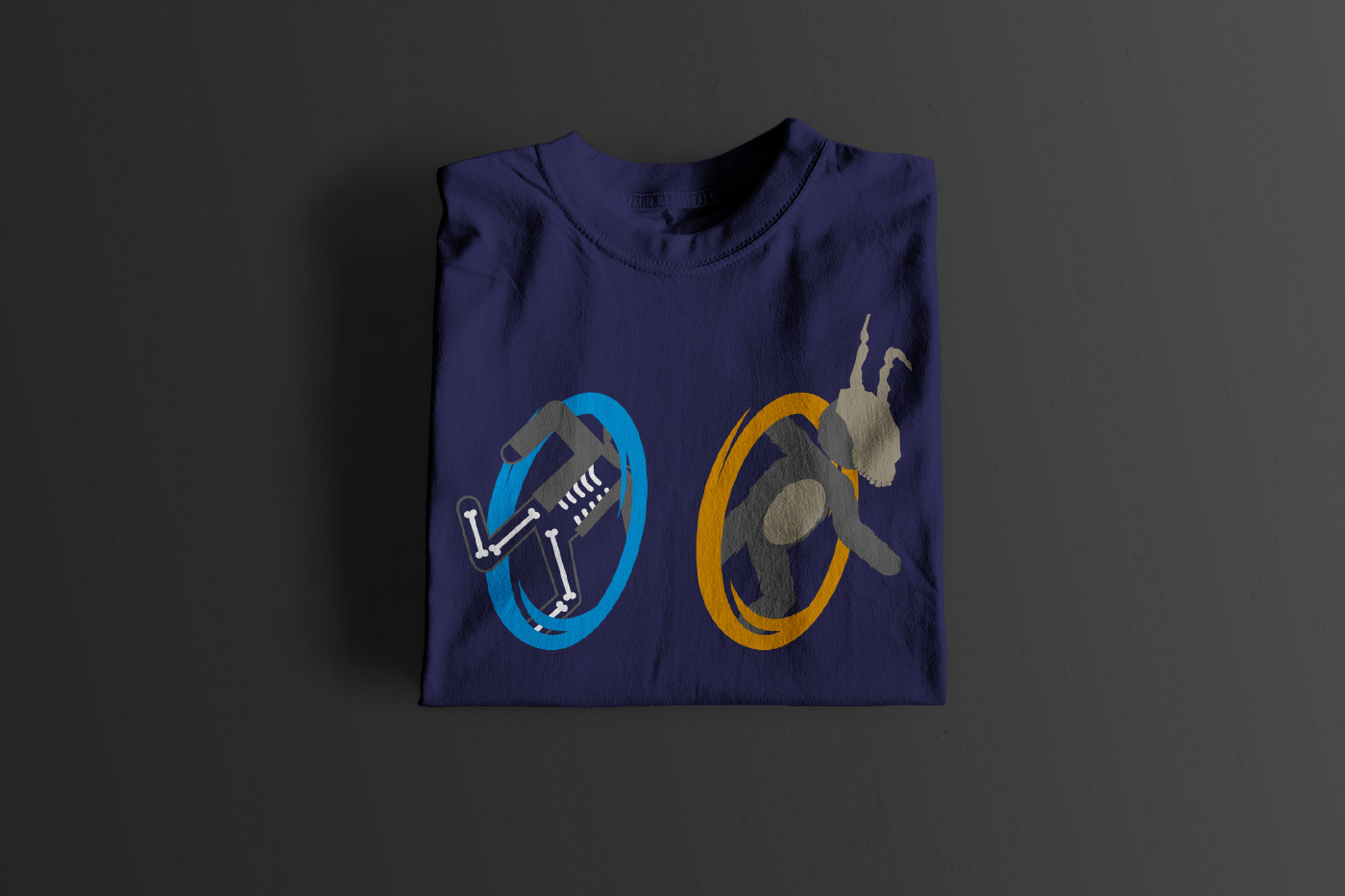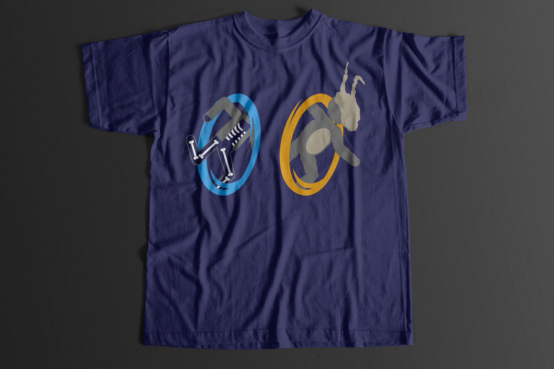 This design, which is a mash-up between the popular game series Portal and the cult film Donnie Darko, was featured on TeeFury.com as their daily tee for January 12, 2011. It was available for 24 hours and